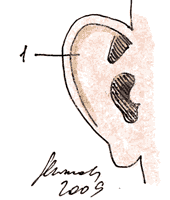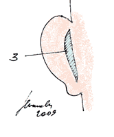 3. Удаляемый участок кожи на задней стороне ушной раковины